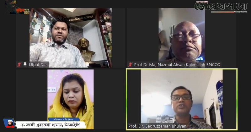 অধ্যাপক ড. বদরুজ্জামান ভূঁইয়া কাঞ্চন বলেন, আজকে এমন একটা সময়ে আমরা আলোচনা করছি এটা হল এই মাসটি আমাদের জন্য আনন্দের মাস, এই মাসটি আমাদের বিজয়ের মাস। তাই এই বিজয়ের মাসে আমি প্রথমেই গভীর শ্রদ্ধাভরে স্মরণ করছি সেই ব্যক্তিকে, যিনি আমাদেরকে একটি পতাকা এনে দিয়েছেন, যার জন্ম না হলে আমরা এই স্বাধীন বাংলাদেশ পেতাম না, আজকে এখানে বসে কথা বলতে পারতাম না। সেই জাতির পিতা বঙ্গবন্ধু শেখ মুজিবুর রহমানসহ তার পরিবারের নিহত সদস্যদের রুহের মাগফিরাত কামনা করছি। আমাদের জাতীয় চার নেতার মাগফিরাত কামনা করছি এবার এর সাথে আমাদের মুক্তিযোদ্ধাদের ব্যাপক শ্রদ্ধা জানাচ্ছি। ১৯৭১ সালে দীর্ঘ ৯ মাসের এক রক্তক্ষয়ী যুদ্ধ শেষে ৩০ লাখ শহীদের রক্তের বিনিময়ে বীর বাঙালি বিজয় ছিনিয়ে এনেছিল ১৬ ডিসেম্বর। বিজয়ের সেই মাহেন্দ্রক্ষণের ৫০ বছর পেরিয়ে আসার পথে আমরা। একাত্তরের ১৬ ডিসেম্বর চূড়ান্ত বিজয় অর্জিত হলেও বাঙালির স্বাধীনতার রক্তলাল সূর্যোদয়ের ভিত্তি সূচিত হয়েছিল বেশ আগেই। ১৯৭১ সালের ৭ মার্চ বঙ্গবন্ধুর ঐতিহাসিক ভাষণে উদ্দীপ্ত বাঙালি জাতি স্বাধীনতা অর্জনের দৃঢ় শপথ নিয়েছিল। ২৫ মার্চের কালরাতে পাকিস্তান হানাদার বাহিনীর নির্মম নৃশংস হত্যাকাণ্ডের পর বাংলার দামাল ছেলেরা রুখে দাঁড়িয়েছিল শোষণের বিরুদ্ধে। এরপর টানা ৯ মাসের রক্তক্ষয়ী সংগ্রাম আর আত্মদানের মাধ্যমে আসে কাক্সিক্ষত বিজয়। বাঙালি জাতির সর্বশ্রেষ্ঠ অর্জন মুক্তিযুদ্ধের অবিস্মরণীয় গৌরবদীপ্ত চূড়ান্ত বিজয় এ মাসের ১৬ ডিসেম্বর অর্জিত হয়। স্বাধীন জাতি হিসেবে সমগ্র বিশ্বে আত্মপরিচয় লাভ করে বাঙালিরা। অর্জন করে নিজস্ব ভূ-খণ্ড। আর সবুজের বুকে লাল সূর্য খচিত নিজস্ব জাতীয় পতাকা। ভাষার ভিত্তিতে যে জাতীয়তাবাদ গড়ে উঠেছিল, এক রক্তক্ষয়ী যুদ্ধের পর বিজয়ের মাধ্যমে ঘোষিত স্বাধীনতা পূর্ণতা পায় এ দিনে। এই বছর এই বিজয় মাসের প্রাক্কলে আমরা আরও একটি অর্জন অর্জিত করেছি। স্বল্পোন্নত দেশ (এলডিসি) থেকে বাংলাদেশের উত্তরণের সুপারিশ জাতিসংঘের অনুমোদন পেয়েছে। বাংলাদেশ একমাত্র দেশ হিসেবে স্বল্পোন্নত দেশ থেকে উত্তরণের ৩টি মানদণ্ডই পূরণ করেছে। ১৭ নভেম্বর ২০২১ তারিখে জাতিসংঘ সাধারণ পরিষদের ৭৬তম বৈঠকের ৪০তম প্ল্যানারি সভায় এই ঐতিহাসিক সিদ্ধান্ত হয়। এটি বঙ্গবন্ধুর স্বপ্ন, প্রধানমন্ত্রী শেখ হাসিনার রূপকল্প ২০২১-এর বাস্তবায়ন। আমাদের স্বাধীনতার সুবর্ণজয়ন্তী ও বঙ্গবন্ধুর জন্মশতবার্ষিকী উদযাপনের গুরুত্বপূর্ণ মুহূর্ত। অনেকেই এই অর্জনকে বাংলাদেশের উন্নয়নযাত্রার এক মহান মাইলফলক হিসেবে অভিহিত করেছেন। অনেকে বঙ্গবন্ধুর স্বপ্নপূরণে তার কন্যা শেখ হাসিনার দৃঢ় নেতৃত্বের মাধ্যমে এক অভূতপূর্ব সাফল্য 
