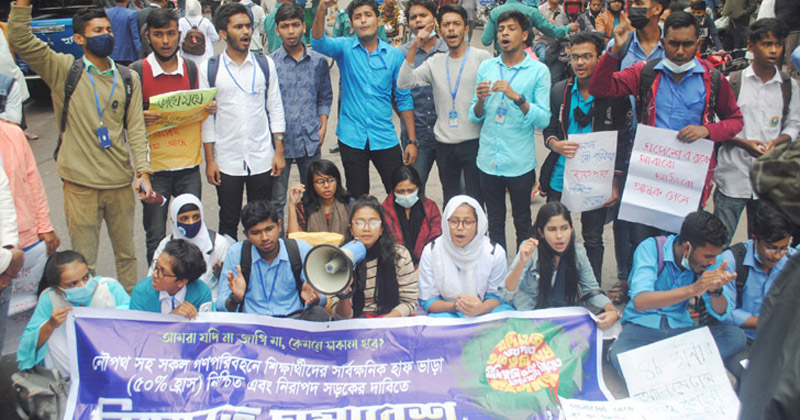 বক্তারা বলেন, বরিশালের নৌযানসহ সব গণপরিবহণে অর্ধেক ভাড়া আদায়, নৌবন্দরে প্রবেশে ঘাট টিকিট মওকুফ ও নিরাপদ সড়ক বাস্তবায়নসহ ৬ দফা দাবি আদায়ে রোববার প্রশাসনকে ৪৮ আলটিমেটাম দেওয়া হয়েছিল। কিন্তু তাতে কোনো সাড়া না পেয়ে ফের আন্দোলনে নেমেছেন। তাদের দাবি আগামী ২৪ ঘণ্টার মধ্যে পূরণ করতে হবে। অন্যথায় জেলা প্রশাসকের দপ্তর ও বিআইডব্লিউটিএর কার্যালয়ের সামনে আমরণ অনশন করা হবে বলে হুমকি দেন শিক্ষার্থীরা। মানববন্ধন শেষে শিক্ষার্থীরা প্রধান সড়ক সদর রোড এক ঘণ্টা অবরোধ করে রাখেন।