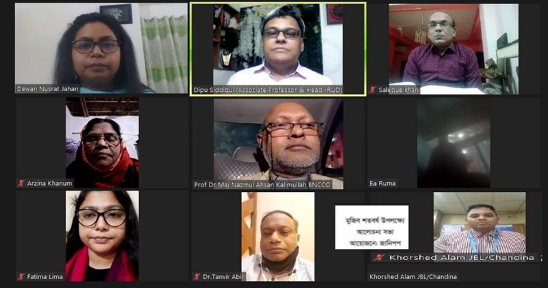 মুজিব শতবর্ষ উপলক্ষ্যে আজ বুধবার (৮ ডিসেম্বর) জানিপপ কর্তৃক আয়োজিত বর্ষকালব্যপী জুম ওয়েবিনারে আলোচনা সভার ১৩১তম পর্ব অনুষ্ঠিত হয়।