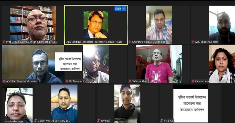 মুজিব শতবর্ষ উপলক্ষ্যে আজ বৃহস্পতিবার (০৯ ডিসেম্বর) জানিপপ কর্তৃক আয়োজিত বর্ষকালব্যপী জুম ওয়েবিনারে আলোচনা সভার ১৩২তম পর্ব অনুষ্ঠিত হয়।