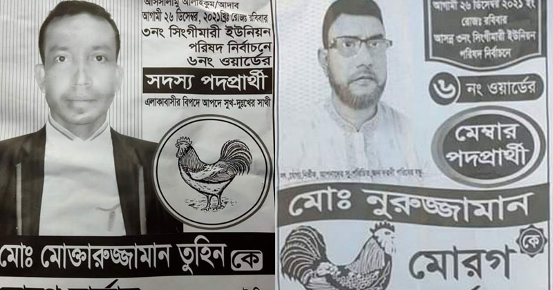 একই প্রতীকের পোস্টার ছাপানো দুই সদস্য প্রার্থী হলেন, ইউপির ৬ নং ওয়ার্ডের মো. নুরুজ্জামান ও মো. মোক্তারুজ্জামান তুহিন।