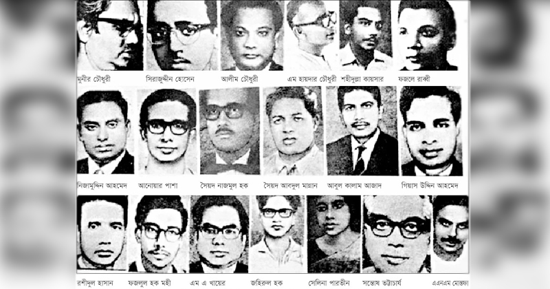 শহীদ বুদ্ধিজীবীদের মধ্যে রয়েছেন, অধ্যাপক মুনির চৌধুরী, ডা.আলিম চৌধুরী, অধ্যাপক মুনিরুজ্জামান, ড. ফজলে রাব্বী, সিরাজ উদ্দিন হোসেন, শহীদুল্লাহ কায়সার, অধ্যাপক জিসি দেব, জ্যোতির্ময় গুহ ঠাকুরতা, অধ্যাপক সন্তোষ ভট্টাচার্য, মোফাজ্জল হায়দার চৌধুরী,অধ্যাপক গিয়াস উদ্দিন,অধ্যাপক আনোয়ার পাশা,অধ্যাপক রশীদুল হাসান, ড.আবুল খায়ের,ড.মুর্তজা,সাংবাদিক খন্দকার আবু তাহের, নিজামউদ্দিন আহমেদ, এসএ মান্নান (লাডু ভাই), এ এন এম গোলাম মোস্তফা, সৈয়দ নাজমুল হক, সেলিনা পারভিনসহ আরো অনেকে। খবর: বাসস
