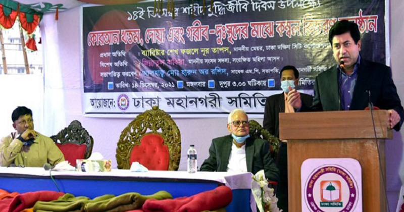 মঙ্গলবার (১৪ ডিসেম্বর) নগরীর নয়াবাজার এলাকায় ঢাকা মহানগর সমিতির (ঢাকা সমিতি) প্রধান কার্যালয় ১৪ ডিসেম্বর শহীদ বুদ্ধিজীবী দিবস উপলক্ষে কোরআন খতম, দোয়া এবং শীতার্ত দুঃস্থ মানুষদের মাঝে কম্বল বিতরণ অনুষ্ঠানে তিনি একথা বলেন।