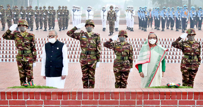বিজয়ের সুবর্ণজয়ন্তীতে সাভারের জাতীয় স্মৃতিসৌধে ফুল দিয়ে মহান মুক্তিযুদ্ধে শহীদদের প্রতি শ্রদ্ধা জানিয়েছেন রাষ্ট্রপতি মো. আবদুল হামিদ ও প্রধানমন্ত্রী শেখ হাসিনা।