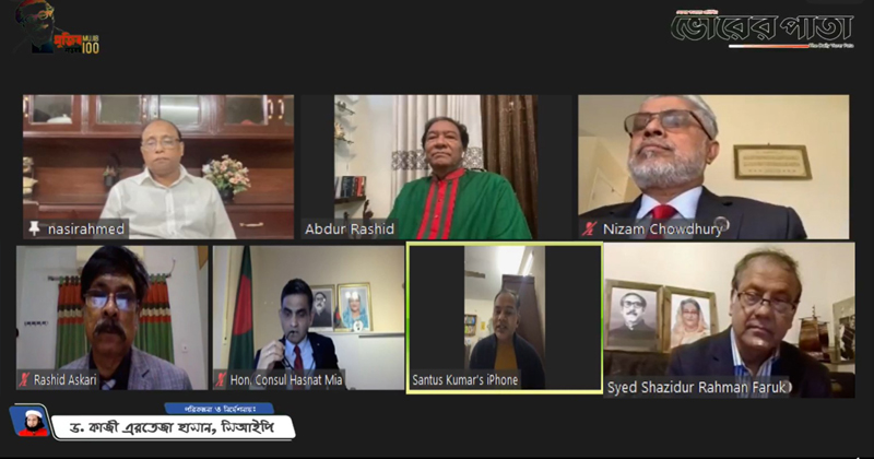 দৈনিক ভোরের পাতার নিয়মিত আয়োজন ভোরের পাতা সংলাপের ৫৫৫তম পর্বে বৃহস্পতিবার এসব কথা বলেন আলোচকরা। ভোরের পাতা সম্পাদক ও প্রকাশক ড. কাজী এরতেজা হাসানের নির্দেশনা ও পরিকল্পনায় অনুষ্ঠানে আলোচক হিসেবে উপস্থিত ছিলেন- নিরাপত্তা বিশ্লেষক ও সামরিক গবেষক মে. জে. (অব.) আব্দুর রশিদ, গ্লোবাল ইসলামী ব্যাংকের চেয়ারম্যান নিজাম চৌধুরী, ইসলামী বিশ্ববিদ্যালয়, কুষ্টিয়ার সাবেক উপাচার্য অধ্যাপক ড. মোঃ হারুন-উর-রশিদ আসকারী, জার্মান দূতাবাসে গণপ্রজাতন্ত্রী বাংলাদেশ সরকার অনারারি কনস্যুলেট, ফর বাংলাদেশ অ্যাসোসিয়েশনের প্রেসিডেন্ট ইঞ্জিনিয়ার হাসনাত মিয়া, যুক্তরাজ্য আওয়ামী লীগের সাধারণ সম্পাদক সৈয়দ সাজিদুর রহমান ফারুক, ঢাকা বিশ্ববিদ্যালয়ে ট্যুরিজম এন্ড হসপিটালিটি ম্যানেজমেন্ট বিভাগের চেয়ারম্যান ড. সন্তোষ কুমার দেব। অনুষ্ঠানটি সঞ্চালনা করেন সাবেক তথ্য সচিব নাসির উদ্দিন আহমেদ।