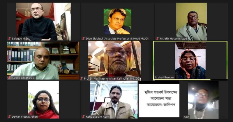 মুজিব শতবর্ষ উপলক্ষ্যে আজ শুক্রবার (১৭ই ডিসেম্বর) জানিপপ কর্তৃক আয়োজিত বর্ষকালব্যপী জুম ওয়েবিনারে আলোচনা সভার ১৩৯তম পর্ব অনুষ্ঠিত হয়।