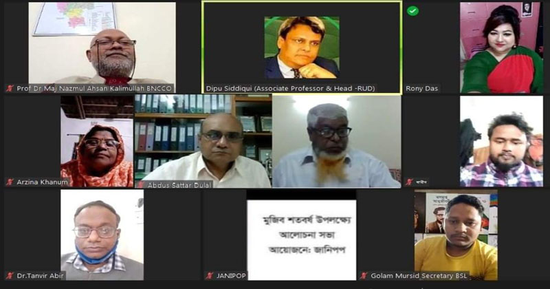 মুজিব শতবর্ষ উপলক্ষ্যে আজ শনিবার (১৮ ডিসেম্বর) জানিপপ কর্তৃক আয়োজিত বর্ষকালব্যপী জুম ওয়েবিনারে আলোচনা সভার ১৩৮তম পর্ব অনুষ্ঠিত হয়।