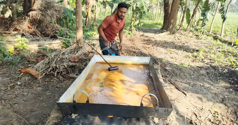 তিনি আরও বলেন, প্রতিদিন দুপুর থেকে বিকেল পর্যন্ত গাছ কেটে মাটির ভাড় পাতার কাজ করি। ভোরে সেই মাটির ভাড় থেকে রস সংগ্রহ করি। প্রতিটি ভাড় ১০ কেজির। এক ভাড় রস দিয়ে এক কেজি গুড় অথবা পাটালি তৈরি করা হয়। রস সংগ্রহ করে বাড়িতে কিংবা মাঠে বড় চুলায় জাল দেওয়া হয়। এক থেকে দেড় ঘণ্টা জ্বাল দেওয়ার পর গুড়-পাটালি তৈরি করা হয়। তবে পাটালি তৈরি করতে আরও কিছু কৌশল অবলম্বন করতে হয়।