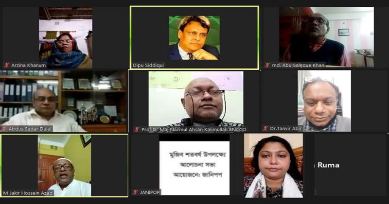 মুজিব শতবর্ষ উপলক্ষ্যে আজ বুধবার (২৯ ডিসেম্বর) জানিপপ কর্তৃক আয়োজিত বর্ষকালব্যপী জুম ওয়েবিনারে আলোচনা সভার ১৫০তম পর্ব অনুষ্ঠিত হয়।