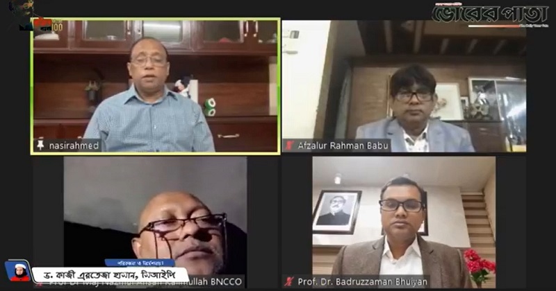 দৈনিক ভোরের পাতার নিয়মিত আয়োজন ভোরের পাতা সংলাপের ৫৬৮তম পর্বে বুধবার (২৯ ডিসেম্বর) এসব কথা বলেন আলোচকরা। ভোরের পাতা সম্পাদক ও প্রকাশক ড. কাজী এরতেজা হাসানের নির্দেশনা ও পরিকল্পনায় অনুষ্ঠানে আলোচক হিসেবে উপস্থিত ছিলেন- বাংলাদেশ আওয়ামী স্বেচ্ছাসেবক লীগের সাধারণ সম্পাদক আফজালুর রহমান বাবু, ঢাকা বিশ্ববিদ্যালয়ে লোক প্রশাসন বিভাগের অধ্যাপক, জাতীয় নির্বাচন পর্যবেক্ষণ পরিষদ’র (জানিপপ) চেয়ারম্যান ড. নাজমুল আহসান কলিমউল্লাহ, ঢাকা বিশ্ববিদ্যালয়ের ট্যুরিজম অ্যান্ড হসপিটালিটি ম্যানেজমেন্ট বিভাগের সাবেক চেয়ারম্যান এবং বাংলাদেশ আওয়ামী স্বেচ্ছাসেবক লীগের শিক্ষা বিষয়ক সম্পাদক অধ্যাপক ড. বদরুজ্জামান ভূঁইয়া কাঞ্চন। অনুষ্ঠানটি সঞ্চালনা করেন সাবেক তথ্য সচিব নাসির উদ্দিন আহমেদ।