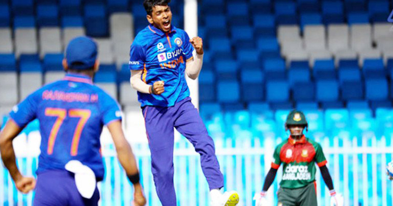 শারজাহতে টস জিতে প্রথমে বোলিং করতে নামে বাংলাদেশের যুবারা। ব্যাট হাতে ৫০ ওভারে ৮ উইকেটে ২৪৩ রান করে ভারত। অপরাজিত সর্বোচ্চ ৯০ রান করেন শেখ রাশেদ। বাংলাদেশের অধিনায়ক বাঁ-হাতি স্পিনার রাকিবুল হাসান ৪১ রানে ৩ উইকেট নেন।