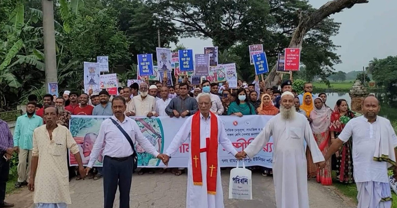 পরে সমাবেশে ইমাম, পুরোহিত, ধর্মযাজকগণ একে অপরের হাতে উপহার তুলে দেন।এ সময় সকল ধর্মের মানুষের হাতে ছিল নানা সম্প্রীতির শ্লোগান সংবলিত প্লে কার্ড।