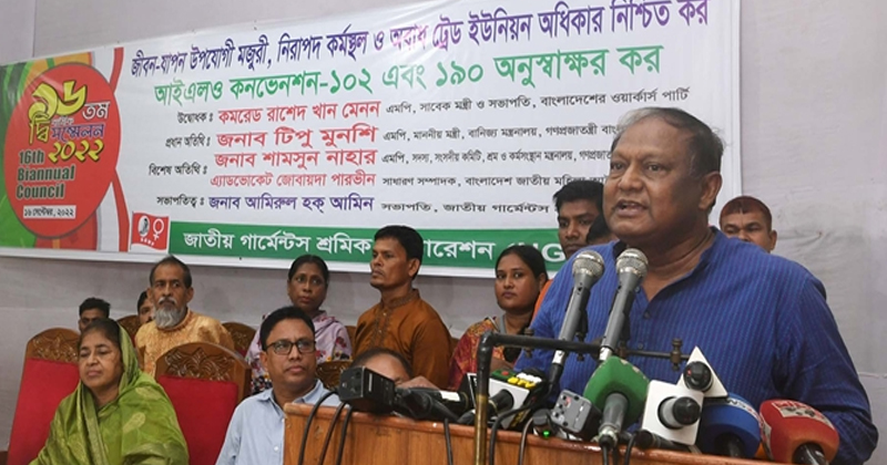 ট্রেড ইউনিয়ন গঠনের বিষয়ে মন্ত্রী বলেন, আপনাদের সাথে আমি একমত, ট্রেড ইউনিয়ন করার অধিকার দিতে হবে। কিন্তু সেটা যৌক্তিক হতে হবে। আপনাদের মনে রাখতে হবে, যে ফ্যাক্টরিতে কাজ করেন সেই ফ্যাক্টরি আপনাদের অন্ন দেয়। আবার ফ্যাক্টরির মালিকদেরও আপনাদের প্রয়োজন। তাই দুজনকেই যৌক্তিকভাবে পাশাপাশি থেকে নিজ দরকারে কাজ করে যেতে হবে।