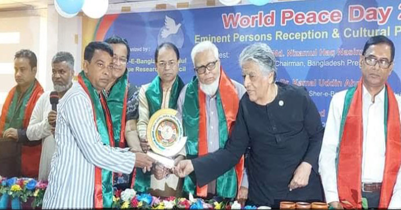 ঢাকাস্থ শেরেবাংলা একে ফজলুল হক গবেষণা পরিষদের উদ্যোগে আজ শুক্রবার বিকেল ৪ টায় ঢাকা বিজয়নগর হোটেল অরনেট এর মিলনায়তনে ' বিশ্ব শান্তি দিবস ' উপলক্ষে আয়োজিত অনুষ্ঠানে এ সম্মাননা দেওয়া হয়।