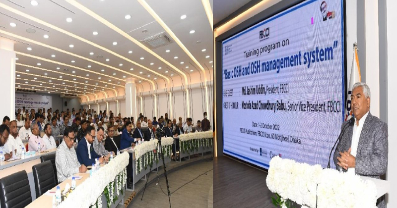 শনিবার সকালে এফবিসিসিআই কার্যালয়ে বেসিক ওএসএইচ অ্যান্ড ওএসএইচ ম্যানেজমেন্ট সিস্টেম শীর্ষক দু’দিন ব্যাপী এ প্রশিক্ষণ কর্মশালায় উদ্বোধন করেন এফবিসিসিআই সভাপতি মোঃ জসিম উদ্দিন। এসময় তিনি বলেন, দেশের সকল শিল্পে পেশাগত নিরাপত্তা ও স্বাস্থ্য সুরক্ষা নিশ্চিত করতে হবে। স্বল্পোন্নত দেশ থেকে উন্নয়নশীল দেশে রুপান্তরের পথে শিল্পকে নিরাপদ করা অত্যন্ত গুরুত্বপূর্ণ। সভাপতি বলেন, দেশের অনেক খাতই বিশ্বমানের পণ্য তৈরি করে। শোভন কর্মপরিবেশ নিশ্চিত করা গেলে এসব পণ্য রপ্তানির সম্ভাবনা তৈরি হবে।
