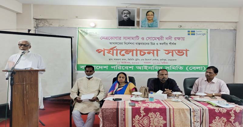 নেত্রকোনা দুর্গাপুরের সাদামাটি ও সোমেশ্বরী নদী রক্ষায় পর্যালোচনা সভা অনুষ্ঠিত হয়েছে। মঙ্গলবার সকালে পৌর শহরের জিবিসি ট্রেনিং হলরুমে এ সভার আয়োজন করে বাংলাদেশ পরিবেশ আইনবিদ সমিতি (বেলা)।