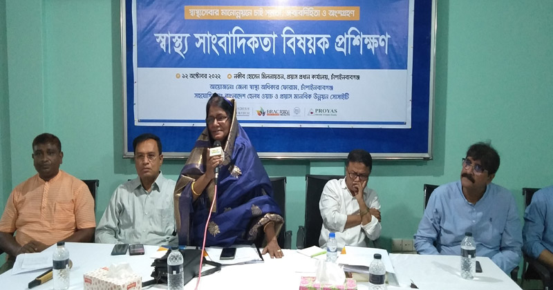 ‘স্বাস্থ্যসেবার মানোন্নয়নে চাই স্বচ্ছতা-জবাবদিহিতা ও অংশগ্রহণ’ এই স্লোগানকে সামনে রেখে গতকাল বুধবার দিনব্যাপী চাঁপাইনবাবগঞ্জে স্বাস্থ্য সাংবাদিকতা বিষয়ে প্রশিক্ষণ অনুষ্ঠিত হয়েছে। বাংলাদেশ হেলথ ওয়াচ ও প্রয়াস মানবিক উন্নয়ন সোসাইটির সহযোগিতায় জেলা স্বাস্থ্য অধিকার ফোরাম এ প্রশিক্ষণের আয়োজন করে। এতে প্রশিক্ষণ প্রদান করেন প্রথম আলো’র স্বাস্থ্যবিষয়ক বিশেষ প্রতিনিধি শিশির মোড়ল।