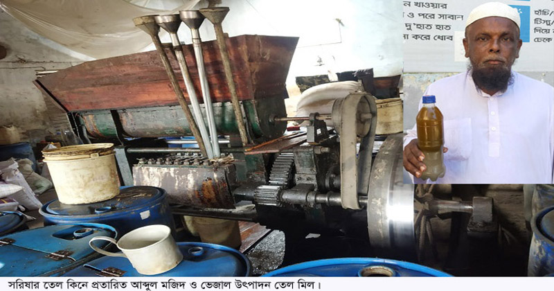 খুলনা পাইকগাছায় বন্ধ হয়নি ভেজাল সরিষার তেল উৎপাদন ও বিক্রি। সাধারন ক্রেতা ভেজালের বিরুদ্ধে কথা বললে উল্টো লাি ত হতে হচ্ছে। সরিষার তেল কিনে প্রতারিত হয়েছেন উপজেলার নোয়াকাটি গ্রামের মৃত দ্বীন আলী সরদারের ছেলে আব্দুল মজিদ। তিনি গত সেপ্টেম্বর মাসের ২৩/২৪ তারিখ কপিলমুনিস্থ উৎসব অয়েল মিলের সত্ত্বাধিকারী খায়রুল ইসলামের মিল থেকে ৩ কেজি সরিষার তেল ক্রয় করেন। ক্রয়কৃত তেল বাড়িতে নিয়ে রাখলে ৪/৫ দিন পর থেকে তেল জমতে থাকে। বোতল জাতকৃত তেলের নিচের অংশ মূল তেল থেকে আলাদা রং ধারণ করে। এতে ভেজাল প্রমাণিত হওয়ায় ৮ অক্টোবর তেলের বোতল নিয়ে সংশ্লিষ্ট প্রতিষ্ঠানে গিয়ে অভিযোগ করলে অভিযোগ আমলে না নিয়ে উল্টো ওখানকার কর্মচারী আব্দুল মজিদকে নানা প্রশ্নের সম্মুখিন করে বিভ্রান্ত করার চেষ্টা করে।