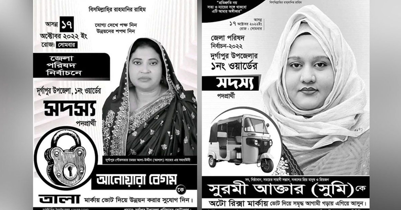 জানা গেছে, দুই সতীন আনোয়ারা বেগম ও সুরমী আক্তার সুমীর স্বামী দুর্গাপুর পৌরসভার মেয়র মো. আলাউদ্দিন আলাল। তিনি দীর্ঘদিন ধরে অসুস্থ অবস্থায় চিকিৎসাধীন রয়েছেন। এরই মধ্যে জেলা পরিষদ নির্বাচনে ১নং ওয়ার্ডে ভোটযুদ্ধে অবতীর্ণ হন তার দুই স্ত্রী।