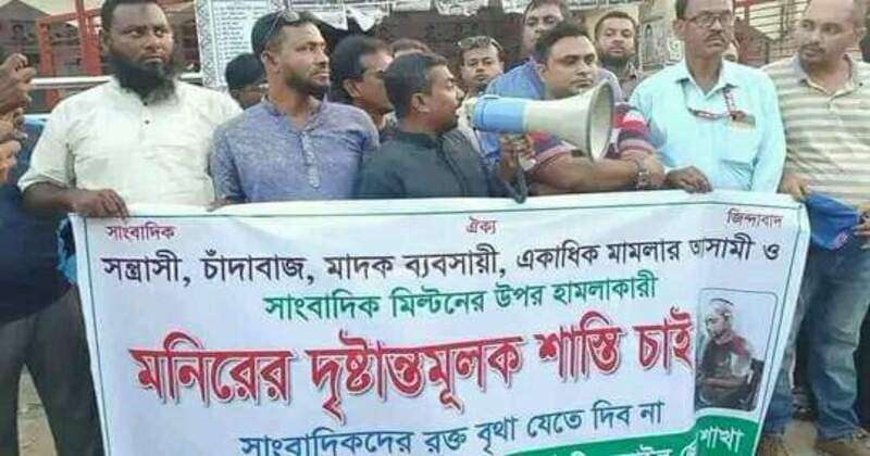 বাংলাদেশ মফস্বল সাংবাদিক সোসাইটি (বিএমএসএস)'র কেন্দ্রীয় ত্রাণ ও পূনর্বাসন সম্পাদক সাংবাদিক মিল্টনের শেখের উপর হত্যার উদ্দেশ্যে হামলাকারী, সিংগাশোলপুর ইউনিয়নের বড়গাতি গ্রামের সন্ত্রাসী, চাদাবাজ, মাদক ব্যবসায়ী ও একাধিক মামলার আসামী মনিরসহ বাকি সকল আসামিদের বিচার ও পলাতকদের গ্রেফতার এবং কঠোর শাস্তির দাবিতে মানববন্ধন ও প্রতিবাদ কর্মসূচি অনুষ্ঠিত হয়েছে।