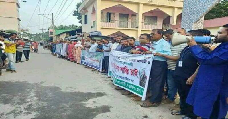 নড়াইলে সাংবাদিক মিল্টনের উপর হামলাকারীদের দ্রুত গ্রেফতারের দাবিতে বিএমএসএস'র মানববন্ধন