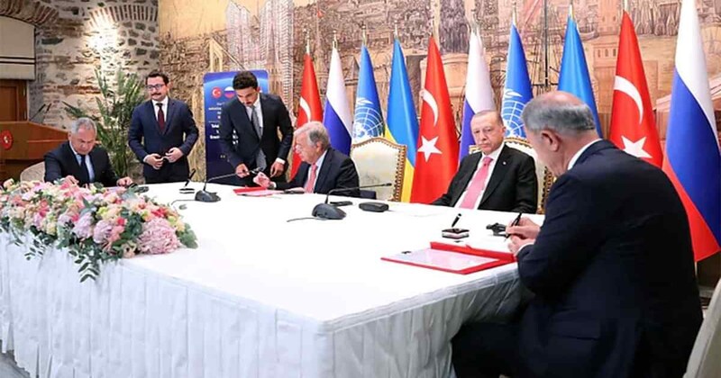 বিশ্বের অন্যতম দুই প্রধান খাদ্য ও জ্বালানি রপ্তানিকারক দেশের মধ্যে ৮ মাসের বেশি সময় ধরে চলমান যুদ্ধের কারণে বিশ্বজুড়ে খাদ্য ও জ্বালানি সংকট ভয়াবহ আকার ধারণ করেছে। বৈশ্বিক এই সংকটের সমাধানে জাতিসংঘের মধ্যস্থতায় গত ২২ জুলাই কিয়েভ এবং মস্কোর কর্মকর্তারা ইউক্রেনে আটকা আড়াই কোটি টন গম ও ভুট্টা বিশ্ববাজারে সরবরাহের লক্ষ্যে তুরস্কে ওই চুক্তি স্বাক্ষর করেন।