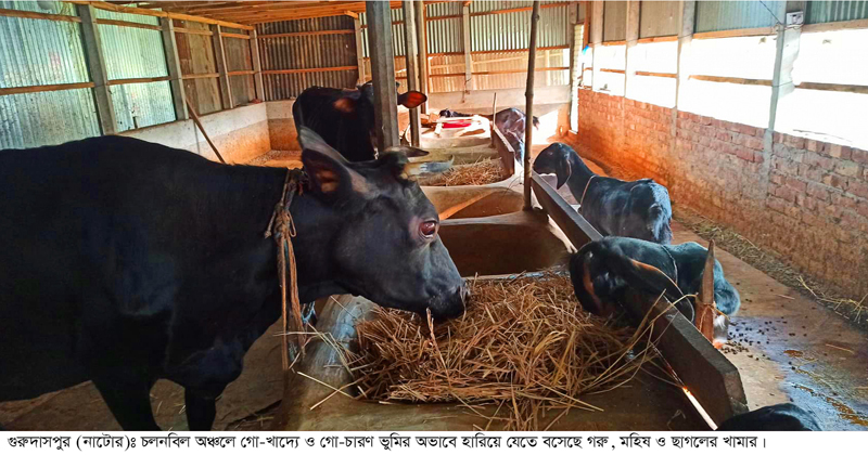 চলনবিল অঞ্চলে বন্যা, অতি বৃষ্টি, খড়া এবং জনসংখ্যা বৃদ্ধি আর বৈরি আবহাওয়ার কারনে গো-চারণ ভূমি ও ঘাসের ক্ষেত নষ্ট হয়ে যাচ্ছে। এতে চলনবিল এলাকায় দেখা দিয়েছে গো-খাদ্যের তীব্র সংকট। ফলে গরু, মহিষ, ছাগল-ভেড়া নিয়ে বিপাকে পড়েছেন খামারি ও পশু পালন কারিরা। এছাড়া ভাটি এলাকায় গো-খাদ্যের সংকট বেশি হওয়ায় গো-খামারিরা বিভিন্ন এলাকা থেকে বেশি দামে খড় ক্রয় করে নৌকা ও সড়ক পথে নিয়ে যাচ্ছেন ভাটির দিকে। এদিকে খড়ের দাম বেশি হওয়ায় বিপাকে পড়েছেন অনেক গরু-মহিষের মালিকরা। কারণ চলনবিল এলাকার গরু-মহিষের খামারিরা মাঠ থেকে কাঁচা ঘাস সংগ্রহ করতে না পেরে খড়ের ওপর নির্ভরশীল হতে হচ্ছে।