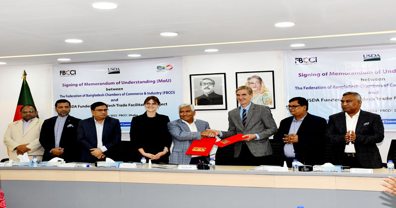 বিশ্ববাজারে বাংলাদেশের কৃষি, মৎস্য ও প্রক্রিয়াজাত খাদ্য রপ্তানি সম্ভাবনাকে কাজে লাগাতে ইউএসডিএ (ইউনাইটেড স্টেট ডিপার্টমেন্ট অব এগ্রিকালচার) ফান্ডেড বাংলাদেশ ট্রেড ফ্যাসিলিটেশন (বিটিএফ) প্রকল্পের সাথে সমঝোতা স্মারক সই করেছে এফবিসিসিআই।