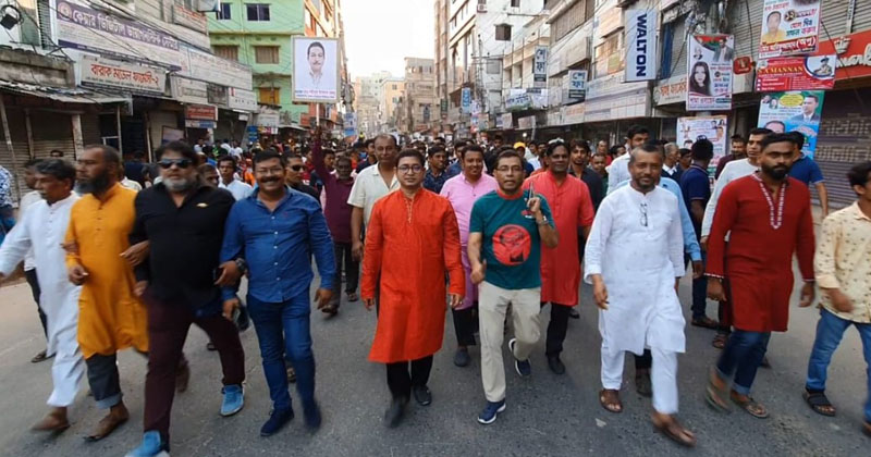 এর আগে যুবলীগের সাবেক প্রেসিডিয়াম সদস্য মো. ফারুক হোসেন কয়েক হাজার নেতাকর্মী নিয়ে রাসেল স্কায়ারে আসেন । এছাড়াও শুম্মার নামাযের পর থেকে জেলার বিভিন্ন এলাকা থেকে খন্ড খন্ড মিছিল নিয়ে আওয়ামী লীগের নেতাকর্মীরা জড়ো হতে থাকে সেখানে । পরে বিকাল সাড়ে চার সময় বিশাল এই মিছিলটি বের করে