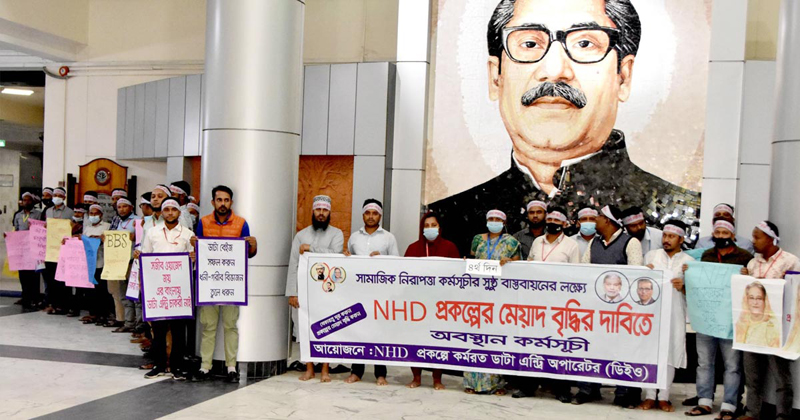 বিশ্বব্যাংকের আর্থিক ও কারিগরি সহযোগিতায় ২০১৩ সালের জুলাইয়ে শুরু হওয়া বাংলাদেশ পরিসংখ্যান ব্যুরোর (বিবিএস) আওতায় ন্যাশনাল হাউজহোল্ড ডাটাবেইজ (এনএইচডি) প্রকল্পের মেয়াদ বাড়ানোর দাবিতে অবস্থান কর্মসূচি পালন করেছেন ঢাকা বিশ্ববিদ্যালয়ের ব্যবসায় প্রশাসন ইনস্টিটিউটের (আইবিএ) অধীন নিয়োগপ্রাপ্ত ডাটা এন্ট্রি অপারেটররা। প্রকল্পটি ২০১৩ সালের জুলাই থেকে ২০২২ সালের ডিসেম্বর মেয়াদে বাস্তবায়িত হচ্ছে।