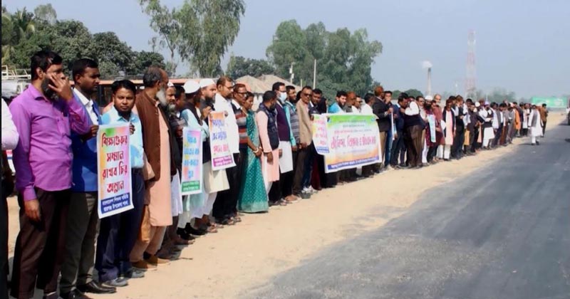বৃহস্পতিবার সকাল ১১ টায় উত্তরবঙ্গ মহাসড়কে ভূইয়াগাঁতী বাসস্ট্যন্ড এলাকায় উপজেলা শিক্ষক সমিতির আয়োজনে ঘন্টাব্যাপী মানববন্ধন করা হয়।