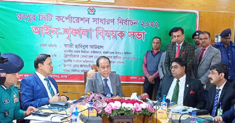 রংপুর সিটি করপোরেশন নির্বাচন প্রসঙ্গে সিইসি বলেন, স্বাধীনভাবে ভোটাধিকার প্রয়োগের ক্ষেত্রে কেউ বাধা সৃষ্টি করলে তার বিরুদ্ধে কঠোর ব্যবস্থা নেওয়া হবে। আইনশৃঙ্খলা বাহিনীর সদস্যরা এ ব্যাপারে যথাযথ দায়িত্ব পালনের আশ্বাস দিয়েছেন। এজন্য ২৭ ডিসেম্বর নগরবাসীকে স্বতঃস্ফূর্তভাবে নির্বাচনে অংশ নেওয়ার আহবান জানান। এদিন সিসি ক্যামেরায় ঢাকা থেকে পর্যবেক্ষণ করার পাশাপাশি সংশ্লিষ্ট রিটার্নিং কর্মকর্তাকেও নির্বাচন পর্যবেক্ষণের নির্দেশ দেন।