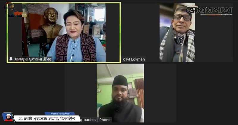 দৈনিক ভোরের পাতার নিয়মিত আয়োজন ভোরের পাতা সংলাপের ৯১৫তম পর্বে এসব কথা বলেন আলোচকরা। ভোরের পাতা সম্পাদক ও প্রকাশক ড. কাজী এরতেজা হাসানের নির্দেশনা ও পরিকল্পনায় অনুষ্ঠানে আলোচক হিসেবে উপস্থিত ছিলেন সর্ব ইউরোপীয় আওয়ামী লীগের সিনিয়র সহ সভাপতি, ইতালি বাংলাদেশ অ্যাসোসিয়েশনের প্রথম নির্বাচিত সভাপতি কে এম লোকমান হোসেন, ল’ইয়ার্স অ্যাসোসিয়েশন অব বাংলাদেশের যুগ্ম সাধারণ সম্পাদক, বাংলাদেশ সুপ্রিম কোর্টের অ্যাডভোকেট, বাংলাদেশ আওয়ামী লীগের আইন বিষয়ক কেন্দ্রীয় উপ কমিটির সদস্য এ্যাড. আবদুল কুদ্দুস বাদল। অনুষ্ঠানটি সঞ্চালনা করেন সিনিয়র সাংবাদিক, ভোরের পাতা সংলাপের সমন্বয়ক মাকসুদা সুলতানা ঐক্য।