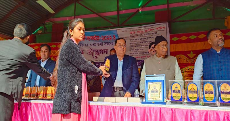 অনুষ্ঠানে উপজেলা পর্যায়ে সর্বোচ্চ নাম্বার অর্জন করে ফারহানা ফেরদৌস উর্মিকে বিদ্যালয়ের সভাপতির পক্ষ থেকে নগদ ১০০০০ও অপো দাতা সদস্য ইসমাইল হোসেন মিলন ৫০০০ টাকা পুরস্কার তুলে দেন।