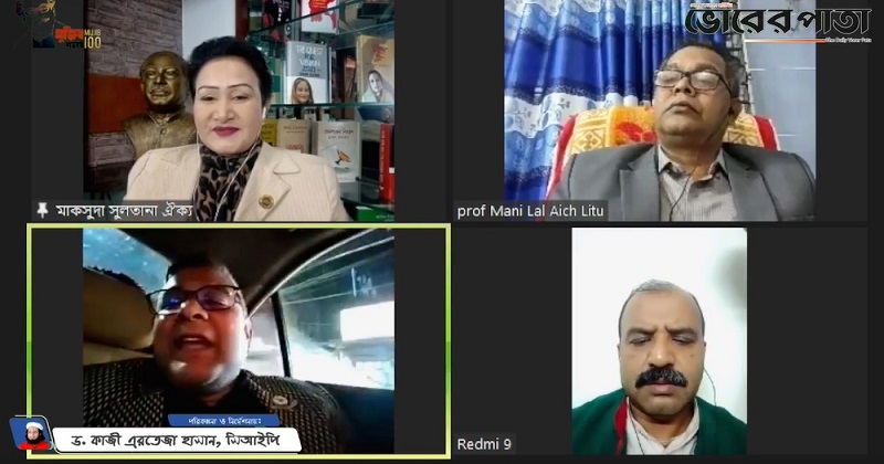 দৈনিক ভোরের পাতার নিয়মিত আয়োজন ভোরের পাতা সংলাপের ৯২৫তম পর্বে এসব কথা বলেন আলোচকরা। ভোরের পাতা সম্পাদক ও প্রকাশক ড. কাজী এরতেজা হাসানের নির্দেশনা ও পরিকল্পনায় অনুষ্ঠানে আলোচক হিসেবে উপস্থিত ছিলেন বঙ্গমাতা শেখ ফজিলাতুন্নেছা মুজিব বিজ্ঞান ও প্রযুক্তি বিশ্ববিদ্যালয়ের পরিকল্পনা ও উন্নয়ন বিভাগের পরিচালক অধ্যাপক কর্নেল (অব.) কাজী শরীফ উদ্দীন, মুক্তিযোদ্ধা সংসদ সন্তান কমান্ড কেন্দ্রীয় কমিটির সভাপতি, বাংলাদেশ আওয়ামী লীগের মুক্তিযুদ্ধ বিষয়ক উপকমিটির সদস্য মেহেদী হাসান, স্বাধীনতা চিকিৎসক পরিষদের প্রতিষ্ঠাতা কেন্দ্রীয় নির্বাহী কমিটির সদস্য ও ঢামেকসুর সাবেক সাধারণ সম্পাদক অধ্যাপক মনিলাল আইচ লিটু। অনুষ্ঠানটি সঞ্চালনা করেন সিনিয়র সাংবাদিক, ভোরের পাতা সংলাপের সমন্বয়ক মাকসুদা সুলতানা ঐক্য।