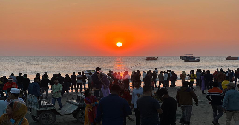 সৌন্দর্যের লীলাভূমি কুয়াকাটায় হাজারো পর্যটকে মুখরিত সমুদ্র সৈকত। সাপ্তাহিক ছুটি ও বড়দিনসহ সরকারী ৩ দিনের ছুটিতে পর্যটন নগরী কুয়াকাটায় আগমন ঘটেছে রেকর্ড সংখ্যক পর্যটকের। শুক্র থেকে শনিবার পর্যন্ত দেশের বিভিন্ন জায়গা থেকে আগমন ঘটে বিভিন্ন ধর্ম ও শ্রেনী-পেশার ভ্রমণ পিপাসুরা কেউ সাতার কাটছেন, কেউ ঘুরছেন ঘোড়ায় চরে, আবার কেউ সৈকতের সাউন্ড বক্স বাজিয়ে নাচে-গানে মেতে উঠেছেন, কেউ আবার সৈকতের বালু নিয়ে খেলা করছেন। সৈকতের বেঞ্চে বসে উপভোগ করছেন অপরূপ প্রাকৃতিক দৃশ্য।