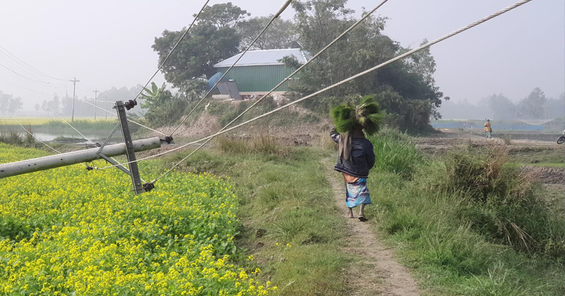 সরেজমিনে গিয়ে দেখা যায়, সড়কের পাশে পড়ে রয়েছে বৈদ্যুতিক খুঁটি এবং স্থানীয়রা বলছে বিদ্যুৎ সংযোগ চলমান রয়েছে। এছাড়াও জমির মালিক ঝুঁকি নিয়ে সরিষার চাষও করেছেন।