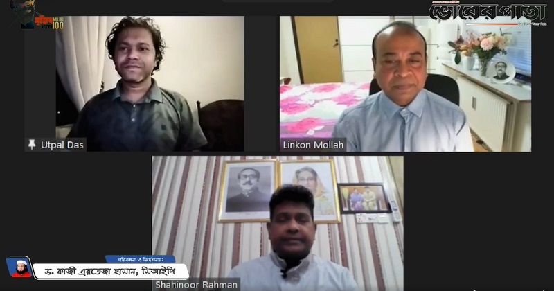 দৈনিক ভোরের পাতার নিয়মিত আয়োজন ভোরের পাতা সংলাপের ৯৩২তম পর্বে এসব কথা বলেন আলোচকরা। ভোরের পাতা সম্পাদক ও প্রকাশক ড. কাজী এরতেজা হাসানের নির্দেশনা ও পরিকল্পনায় অনুষ্ঠানে আলোচক হিসেবে উপস্থিত ছিলেন ইসলামী বিশ্ববিদ্যালয়, কুষ্টিয়ার ইংরেজি বিভাগের অধ্যাপক ড. শাহিনূর রহমান, সর্ব ইউরোপিয়ান আওয়ামী লীগ সমন্বয় কমিটির সদস্য সচিব, ডেনমার্ক আওয়ামী লীগের সাবেক সভাপতি এম এ লিংকন মোল্লা। অনুষ্ঠানটি সঞ্চালনা করেন ভোরের পাতার বিশেষ প্রতিনিধি উৎপল দাস।