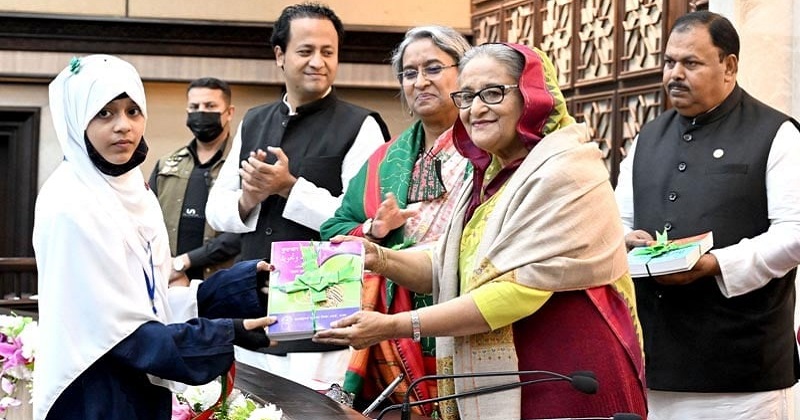 শনিবার (৩১ ডিসেম্বর) সকালে প্রধানমন্ত্রীর কার্যালয়ে (পিএমও) এক অনুষ্ঠানে প্রাথমিক ও মাধ্যমিক স্তরের শিক্ষার্থীদের হাতে বই তুলে দিয়ে বিনামূল্যে পাঠ্যপুস্তক বিতরণ কার্যক্রমের আনুষ্ঠানিক উদ্বোধন করেন তিনি।