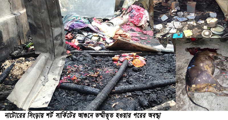 নাটোরের সিংড়ায় শর্ট সার্কিটে অগ্নিকা-ে রেজাউল করিম (৪২) নামে দিনমজুরের বসত ভিটার ৩ টি ঘর ভস্মীভূত হয়েছে। এতে ১ টি গরু, ১ টি বাছুর প্রায় ৩ লক্ষ টাকার ক্ষয়ক্ষতি হয়েছে। ঘটনাটি ঘটেছে উপজেলার ১২ নং রামানন্দ খাজুরা ইউনিয়নের বৃকয়া গ্রামে। মোঃ রেজাউল করিম ঐ গ্রামের মৃত সিরাজুল ইসলামের পুত্র।