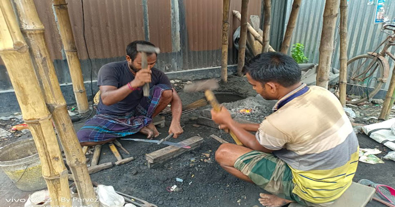 ঈদের দিন যতই ঘনিয়ে আসছে ততই বাড়ছে কামার শিল্পীদের ব্যস্থতা। পুড়ছে কয়লা, জ্বলছে লোহা। সিরাজগঞ্জের সলঙ্গার বিভিন্ন বাজারের কামার পল্লী এখন লোহা হাতুড়ির টুংটাং শব্দে মেতে উঠেছে। হাতুড়ির আঘাতে তৈরি হচ্ছে দৈনন্দিন জীবনে কাজের প্রয়োজনীয় সামগ্রী, দা, বটি, ছুরি, কুড়াল, চাকু, চাপাতিসহ ধারালো সব যন্ত্রপাতি। তাই যেন দম ফেলারও সময় নেই কামারদের। সকাল থেকে রাত পর্যন্ত কাজ করে যাচ্ছেন তারা।