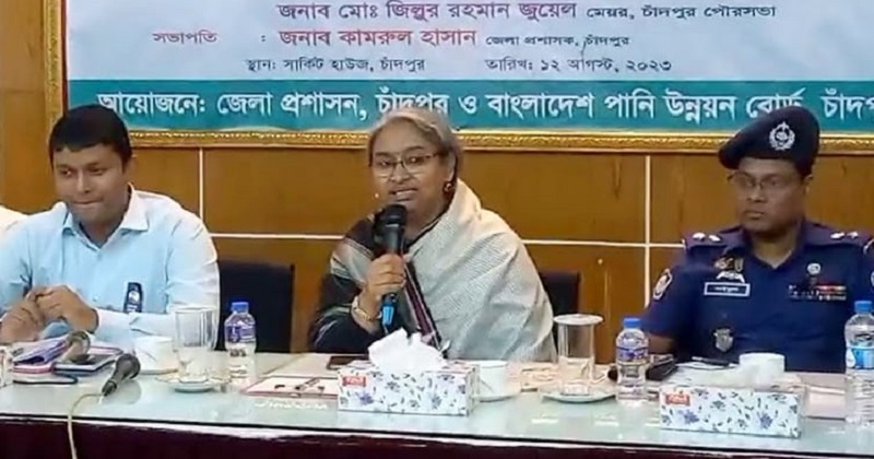 এ সময় তিনি বলেন, ‘আজকের সভায় পানি উন্নয়ন বোর্ড নদী ভাঙনের যে চিত্র আমাদের সামনে তুলে ধরেছে তা দেখেছি। বিভিন্ন স্থানে ভাঙন প্রতিরোধে পানি উন্নয়ন বোর্ড তাৎক্ষণিক ব্যবস্থা গ্রহণ করেছে, সে জন্য ধন্যবাদ। আমি এসব বিষয়গুলো অবগত এবং মন্ত্রণালয়ের সাথে যোগাযোগ করেছি। আমি আবারও চাঁদপুরের নদী ভাঙন প্রতিরোধ সংক্রান্ত প্রকল্পগুলো নিয়ে পানি সম্পদ মন্ত্রণালয়ের প্রতিমন্ত্রীর সাথে কথা বলব।’