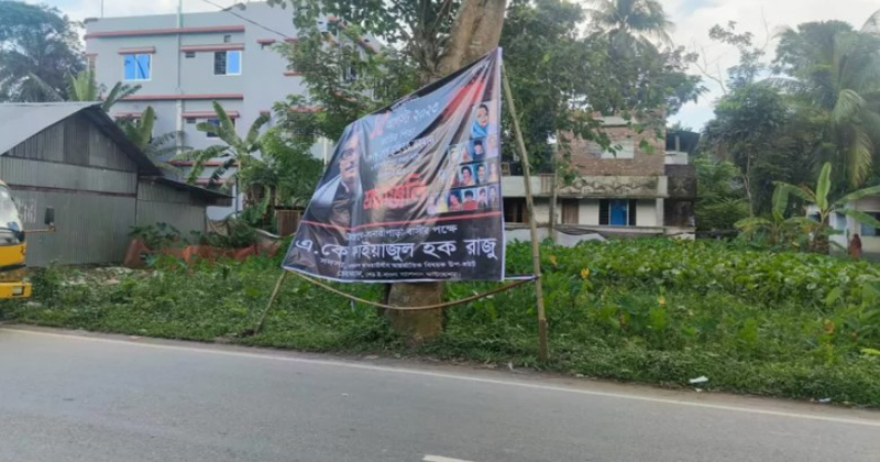 এ সম্পর্কে ফাইয়াজুল হক রাজুর ব্যক্তিগত সহকারী এনাম আহমেদ বলেন, ‘আমরা ১২ আগস্ট থেকে ব্যানার লাগানো শুরু করি। ১৪ আগস্ট বানারীপাড়ার রায়হাট ও শিমুলতলা নামক স্থানে আমাদের দু’টি ফ্রেমসহ ব্যানার রাতে ছিঁড়ে ও ভেঙে ফেলে। তারপর আবার আমরা ওই জায়গায় ব্যানার লাগিয়েছি।’