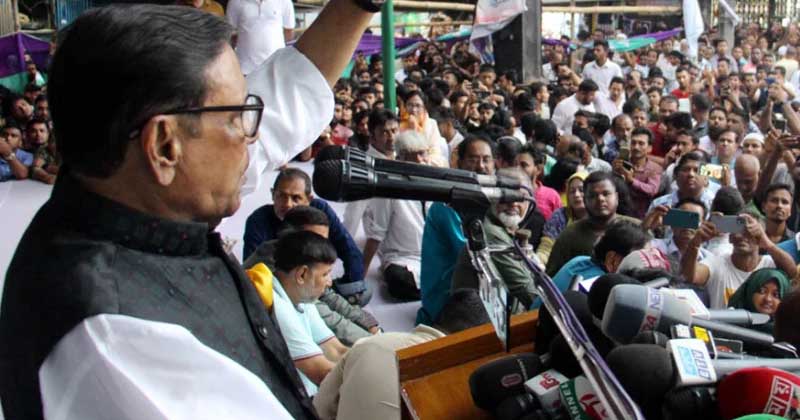 বিএনপি মহাসচিব মির্জা ফখরুলের উদ্দেশ্যে সেতুমন্ত্রী ওবায়দুল বলেন, এখন কী খবর? সিঙ্গাপুর থেকে শলাপরামর্শ নিয়ে এসেছেন, সেই আন্দোলন এখন ভুয়া। ২১ দফা, এক দফা, ২৭ দফা, বিএনপির আন্দোলন ভুয়া। কোনো জনসমর্থন নেই।