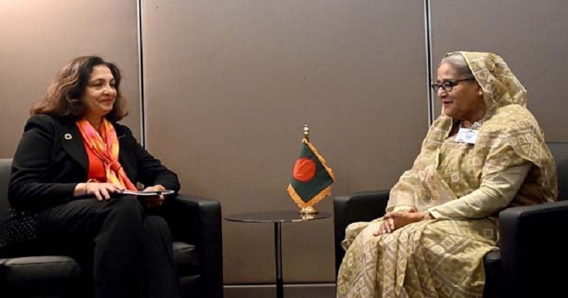 বৃহস্পতিবার যুক্তরাষ্ট্রের পররাষ্ট্র দপ্তরের বেসামরিক, নিরাপত্তা, গণতন্ত্র ও মানবাধিকার বিষয়ক আন্ডার সেক্রেটারি জেনারেল উজরা জেয়া জাতিসংঘের ৭৮তম অধিবেশনের ফাঁকে তাঁর সঙ্গে সৌজন্য সাক্ষাৎ করতে গেলে প্রধানমন্ত্রী এ মন্তব্য করেন।