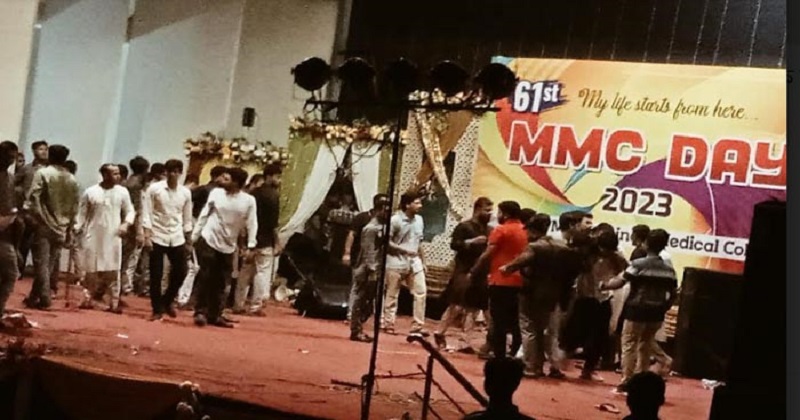 ময়মনসিংহ মেডিকেল কলেজে এমএমসি ডে উপলক্ষে সোমবার দিনব্যাপী অনুষ্ঠান হয়। বিভিন্ন ব্যাচের শিক্ষার্থীরা নিজের মতো করে দিনটি উদযাপন করেন। মেডিকেল কলেজের শহীদ রাইসুল হাসান অডিটোরিয়ামে সাংস্কৃতিক অনুষ্ঠানে ব্যাচভিত্তিক পরিবেশনা চলছিল। অনুষ্ঠান চলাকালে রাত সাড়ে ১০টার দিকে মেডিকেল কলেজ শাখা ছাত্রলীগের সাধারণ সম্পাদক আবদুল্লাহ আল হাসানের সমর্থকরা তাঁকে ঘিরে স্লোগান দিতে শুরু করে। সে সময় শাখা ছাত্রলীগ সভাপতি অনুপম সাহার লোকজনও মঞ্চে গিয়ে পাল্টা স্লোগান দিতে শুরু হয়। তখন দু’পক্ষের মধ্যে উত্তেজনা ছড়িয়ে পড়ে। মঞ্চের সামনে উপস্থিত ছিলেন মেডিকেল কলেজের অধ্যক্ষসহ সিনিয়র শিক্ষকরা। সেখানে ছাত্রলীগের সভাপতি-সম্পাদকও ছিলেন। এক পর্যায়ে দু’পক্ষের নেতাকর্মীরা হাতাহাতি ও মঞ্চে ভাঙচুর শুরু করে।