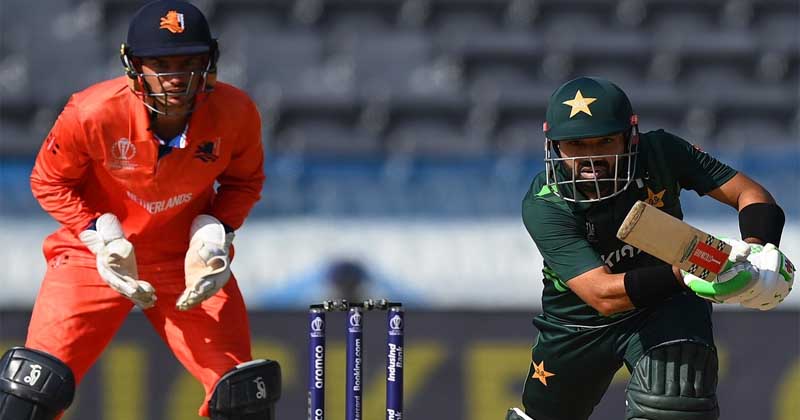 শুরুতেই দুই ওপেনারকে হারিয়ে বিপাকে পরে বাবর আজমের দল। কিন্তু মিডল ও লোয়ার অর্ডারের দৃঢ়তায় শেষ পর্যন্ত ডাচদের ২৮৭ রানের টার্গেট দিয়েছে পাকিস্তান।