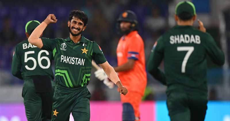 দলীয় ৪৪তম ওভারে আউট হন শাদাব খান। বাস ডি লিডের বলে বোল্ড আউট হয়ে সাজঘরে ফিরেন পাকিস্তানের এই ব্যাটার। এ সময় তিনি করেন ৩৪ বলে ৩২ রান। এরপরে মাঠে নামেন হাসান আলী। তিনিও রানের খাতা না খুলেই প্যাভিলিয়নে ফেরেন। শেষ দিকে নওয়াজ করেন ৩৯ রান।