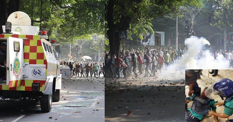 পুলিশের ওপর ব্যাপক ইট-পাটকেল নিক্ষেপ করেছে তারা। বিজয়নগরের কালভার্ট রোডের একটি ভবনে পুলিশের ৪০ জনের একটা ফোর্স আটকা আছে বলেও জানা গেছে।