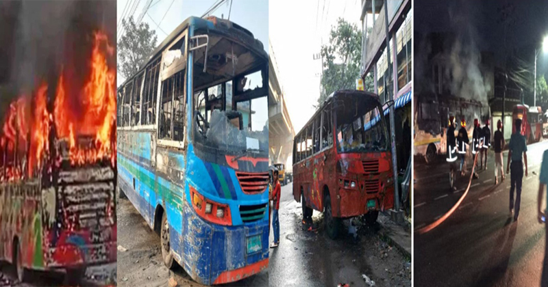 বেলা সাড়ে ৩টার দিকে হাইকোর্ট মোড়ের কদম ফোয়ারার সামনে বঙ্গবন্ধু অ্যাভিনিউ পরিবহনের একটি বাসে অগ্নিসংযোগের ঘটনা ঘটে। কদমতলী থানার মুন্সিখোলায় একটি বাসে ভাঙচুর ও আগুন দেয় দুর্বৃত্তরা। এছাড়া জগন্নাথ বিশ্ববিদ্যালয়ের শিক্ষার্থীদের বহনকারী একটি বাসে ইট-পাটকেল নিক্ষেপ ও ভাঙচুরের ঘটনা ঘটে।